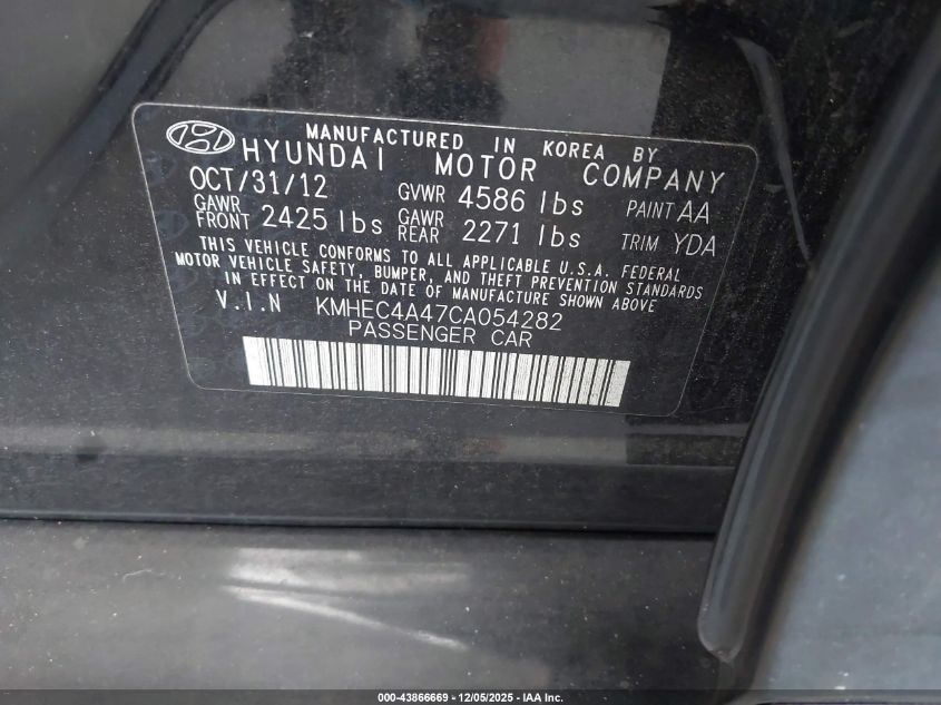 2012 HYUNDAI SONATA 2012 року Гибрид, 2.4, Передний привод, vin - KMHEC4A47CA054282 из США