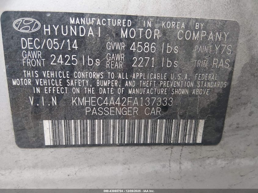 2015 HYUNDAI SONATA 2015 року Гибрид, 2.4, Передний привод, vin - KMHEC4A42FA137333 из США