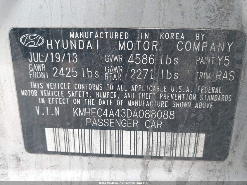 2013 HYUNDAI SONATA 2013 року Гибрид, 2.4, Передний привод, vin - KMHEC4A43DA088088 из США