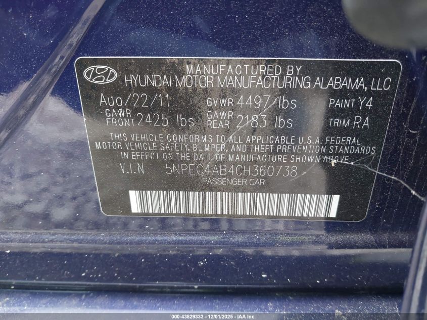 2012 HYUNDAI SONATA 2012 року Бензин, 2.0, Передний привод, vin - 5NPEC4AB4CH360738 из США