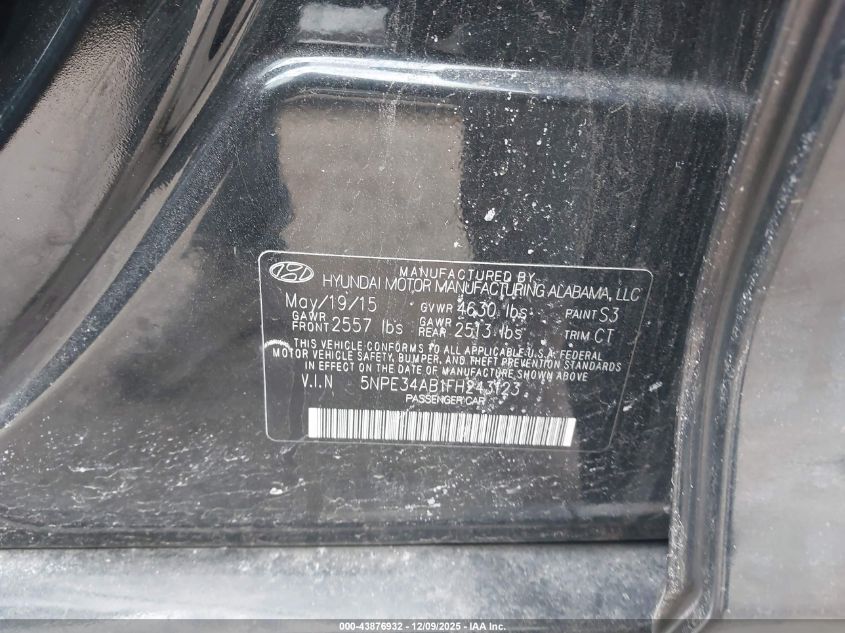 2015 HYUNDAI SONATA 2015 року Бензин, 2.0, Передний привод, vin - 5NPE34AB1FH243123 из США
