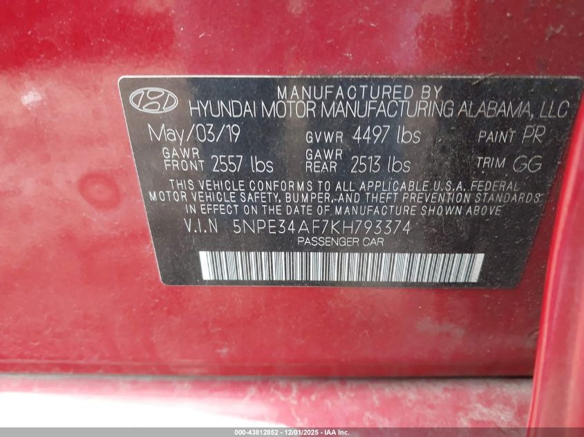 2019 HYUNDAI SONATA 2019 року Бензин, 2.4, Передний привод, vin - 5NPE34AF7KH793374 из США