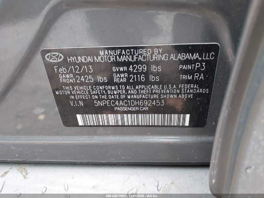 Цвет СерыйЦилиндры 4Привод Передний приводVIN 5NPEC4AC1DH692453Состояние СтационарноПовреждения По всему авто AutoRIA
