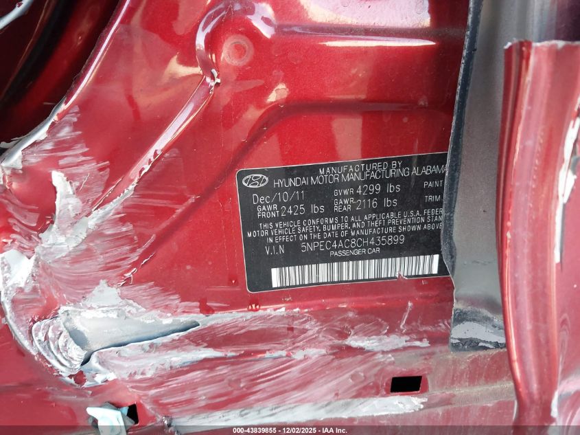 2012 HYUNDAI SONATA 2012 року Бензин, 2.4, Передний привод, vin - 5NPEC4AC8CH435899 из США