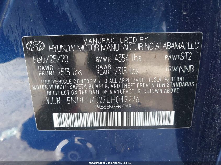 2020 HYUNDAI SONATA 2020 року Бензин, 1.6, Передний привод, vin - 5NPEH4J27LH042226 из США
