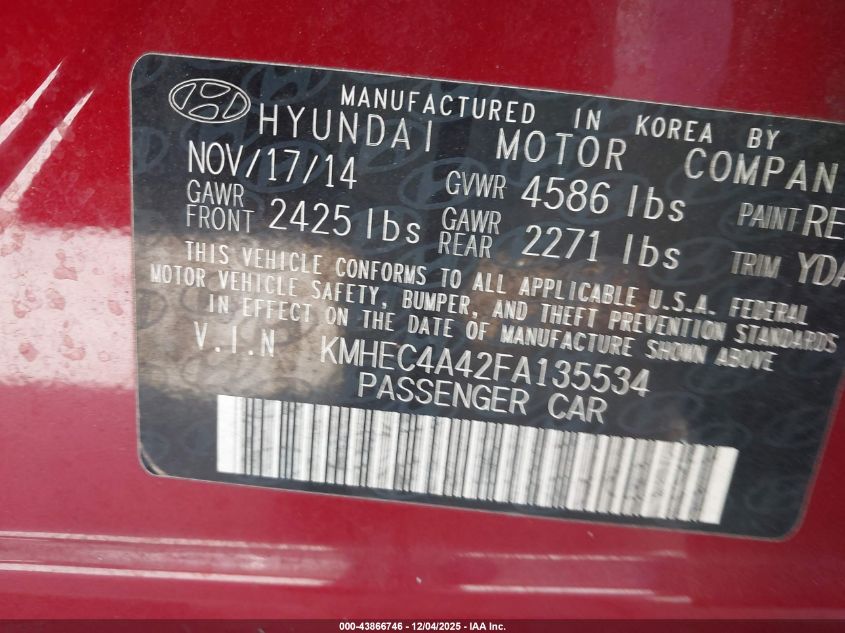 2015 HYUNDAI SONATA 2015 року Гибрид, 2.4, Передний привод, vin - KMHEC4A42FA135534 из США