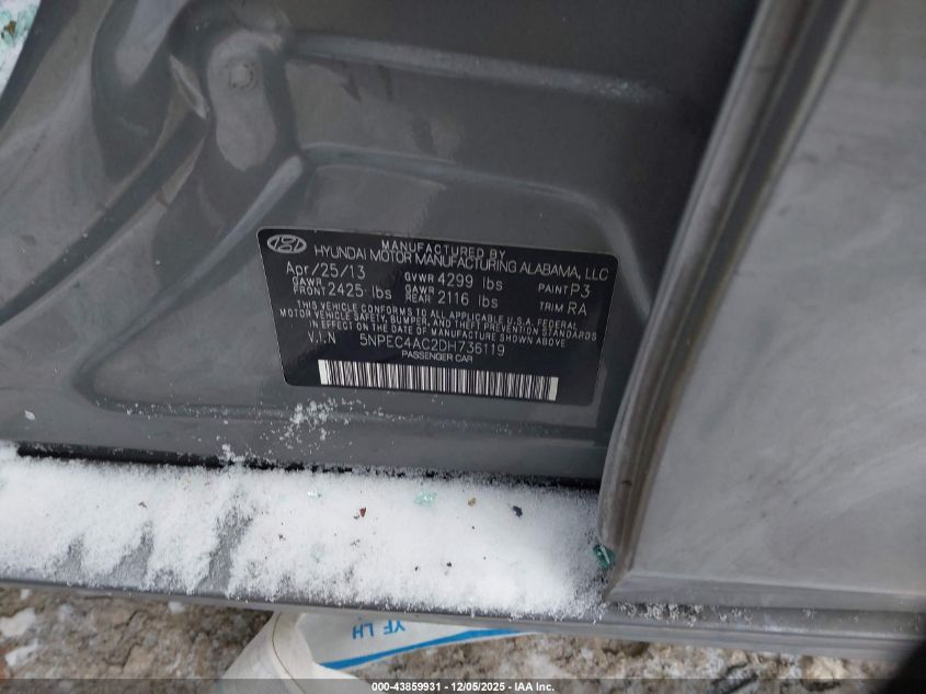 Цвет СерыйЦилиндры 4Привод Передний приводVIN 5NPEC4AC2DH736119Состояние Заводится и едет (проверено)Повреждения Левая сторона AutoRIA
