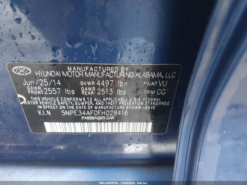 2015 HYUNDAI SONATA 2015 року Бензин, 2.4, Передний привод, vin - 5NPE34AF0FH028416 из США
