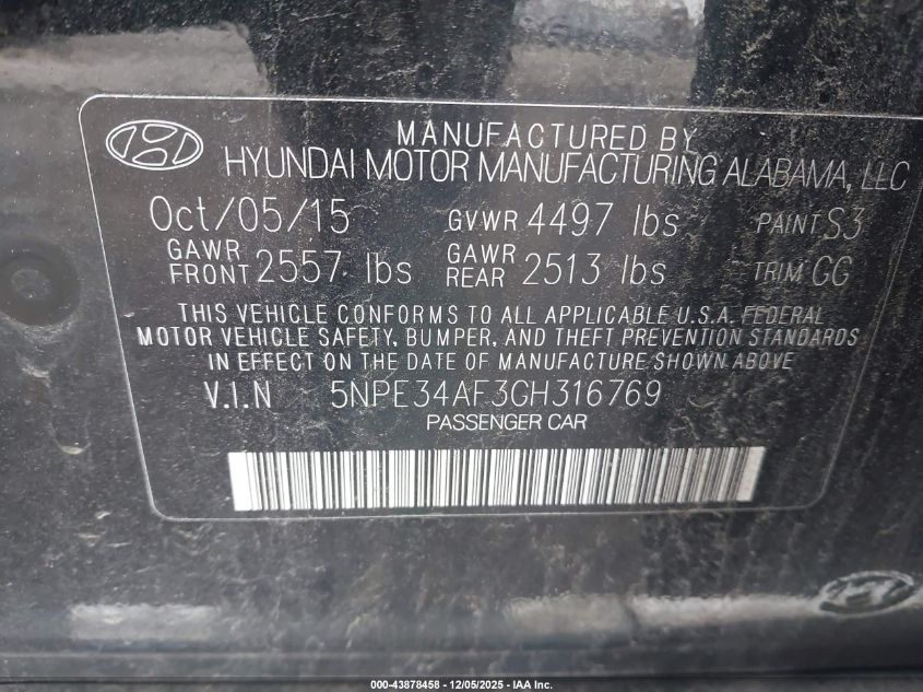 2016 HYUNDAI SONATA 2016 року Бензин, 2.4, Передний привод, vin - 5NPE34AF3GH316769 из США