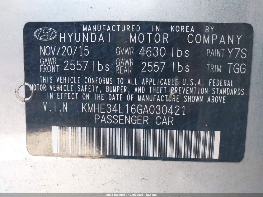 2016 HYUNDAI SONATA 2016 року Гибрид, 2.0, Передний привод, vin - KMHE34L16GA030421 из США