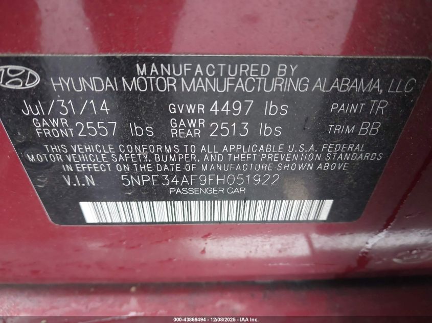 2015 HYUNDAI SONATA 2015 року Бензин, 2.4, Передний привод, vin - 5NPE34AF9FH051922 из США