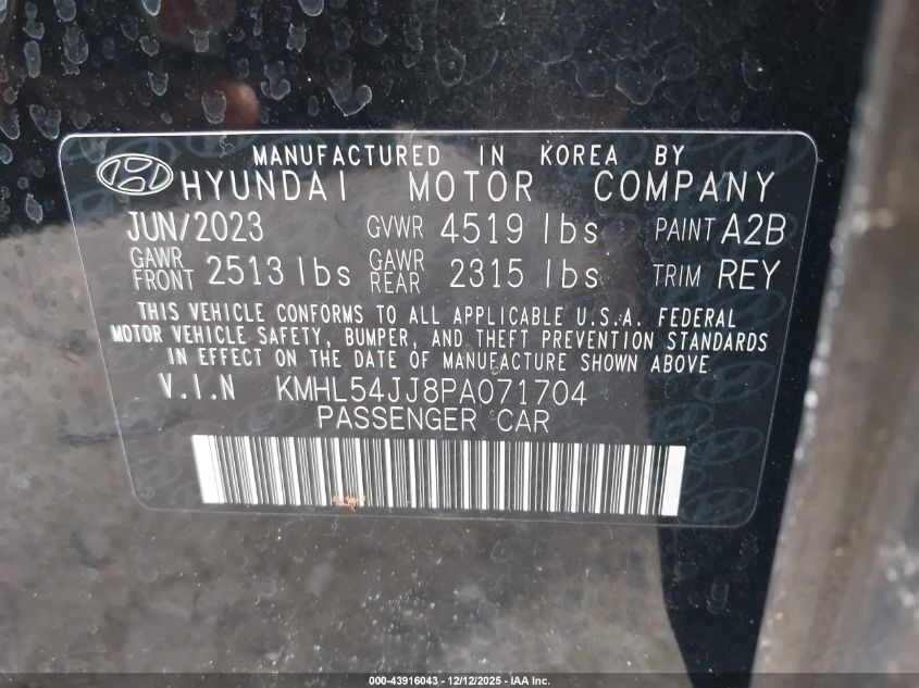 2023 HYUNDAI SONATA 2023 року Гибрид, 2.0, Передний привод, vin - KMHL54JJ8PA071704 из США
