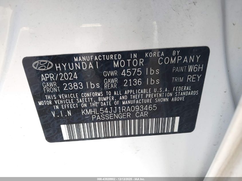 2024 HYUNDAI SONATA 2024 року Гибрид, 2.0, Передний привод, vin - KMHL54JJ1RA093465 из США