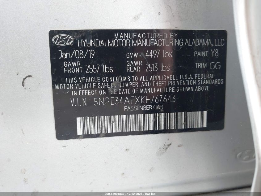 2019 HYUNDAI SONATA 2019 року Бензин, 2.4, Передний привод, vin - 5NPE34AFXKH767643 из США
