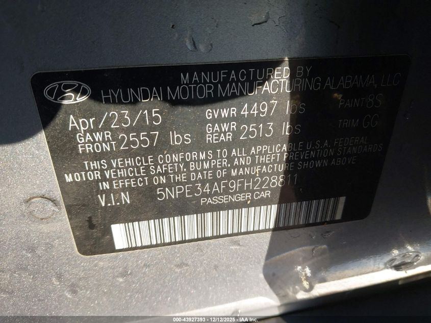 2015 HYUNDAI SONATA 2015 року Бензин, 2.4, Передний привод, vin - 5NPE34AF9FH228811 из США