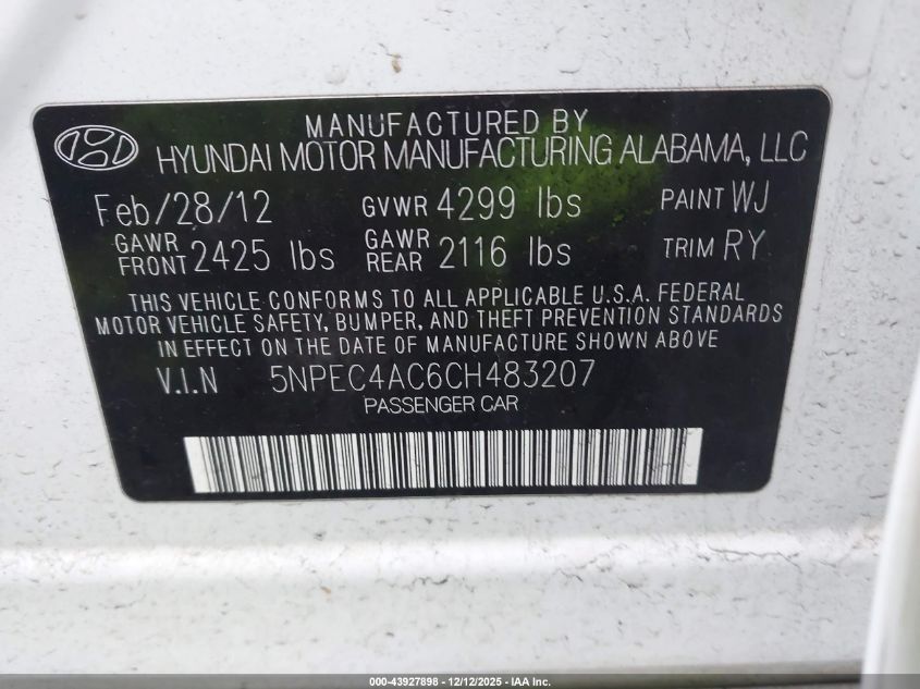 2012 HYUNDAI SONATA GLS