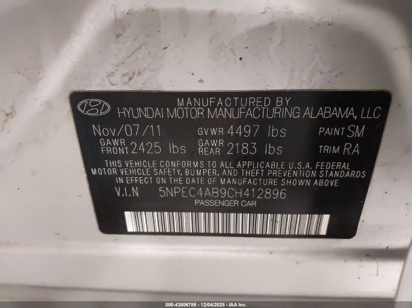 2012 HYUNDAI SONATA GLS