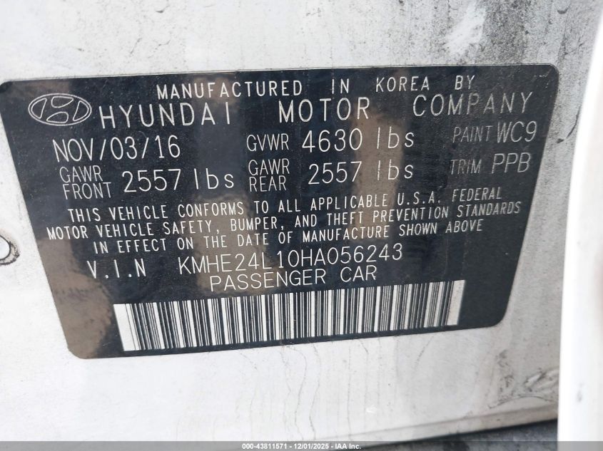 2017 HYUNDAI SONATA 2017 року Гибрид, 2.0, Передний привод, vin - KMHE24L10HA056243 из США
