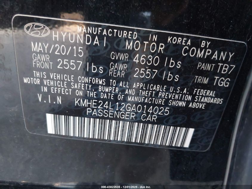 2016 HYUNDAI SONATA 2016 року Гибрид, 2.0, Передний привод, vin - KMHE24L12GA014025 из США