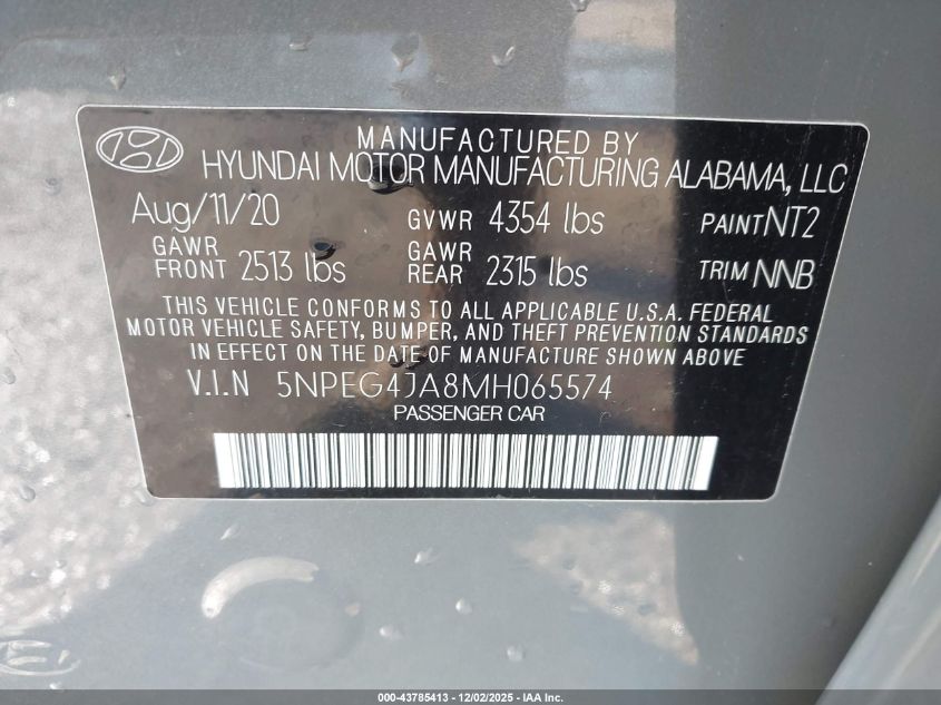 2021 HYUNDAI SONATA 2021 року Бензин, 2.5, Передний привод, vin - 5NPEG4JA8MH065574 из США