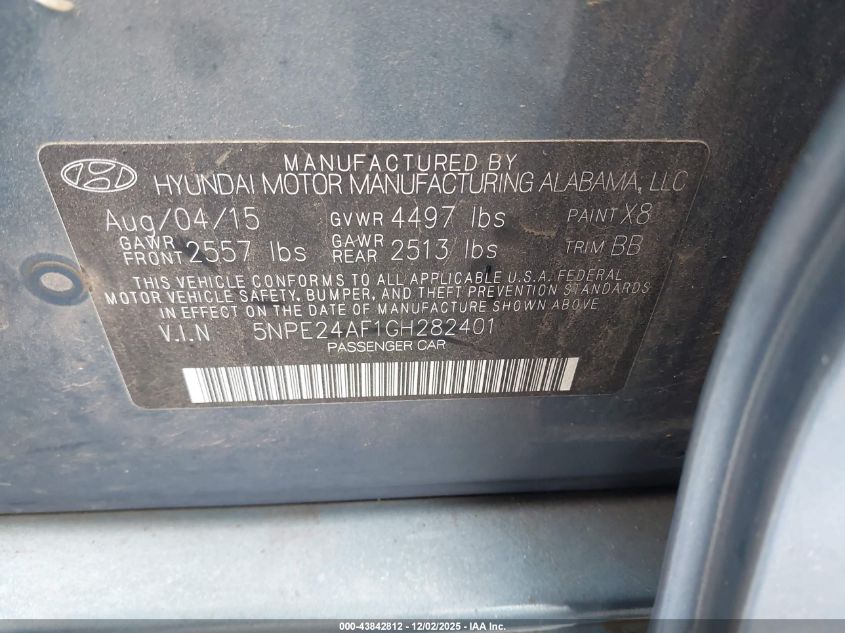 2016 HYUNDAI SONATA 2016 року Бензин, 2.4, Передний привод, vin - 5NPE24AF1GH282401 из США