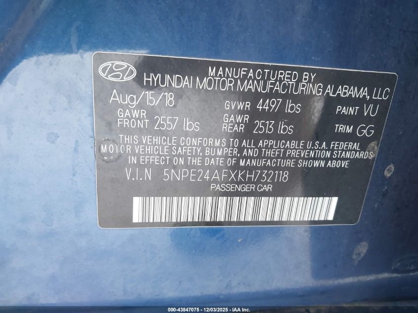 2019 HYUNDAI SONATA LIMITED