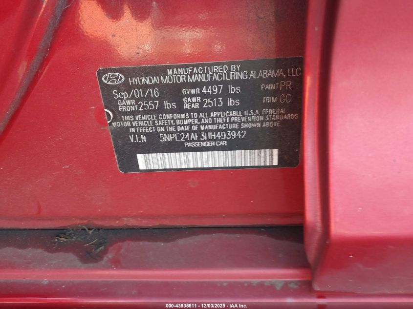 2017 HYUNDAI SONATA 2017 року Бензин, 2.4, Передний привод, vin - 5NPE24AF3HH493942 из США