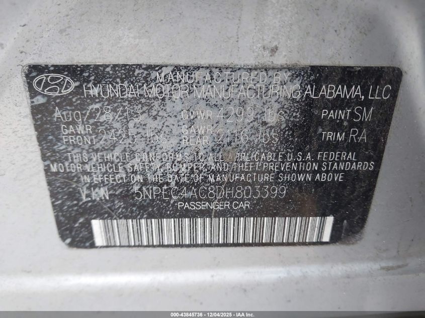 2013 HYUNDAI SONATA 2013 року Бензин, 2.4, Передний привод, vin - 5NPEC4AC8DH803399 из США