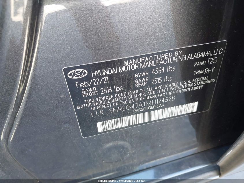 2021 HYUNDAI SONATA 2021 року Бензин, 2.5, Передний привод, vin - 5NPEG4JA1MH124528 из США