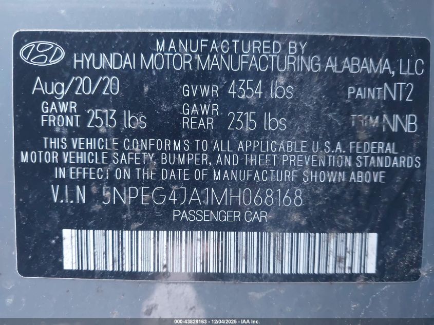 2021 HYUNDAI SONATA 2021 року Бензин, 2.5, Передний привод, vin - 5NPEG4JA1MH068168 из США