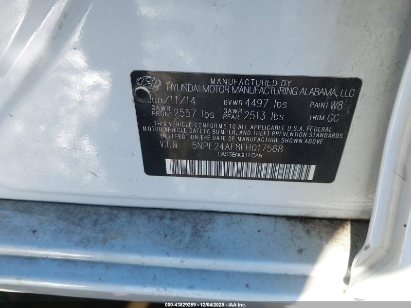 2015 HYUNDAI SONATA 2015 року Бензин, 2.4, Передний привод, vin - 5NPE24AF8FH017568 из США