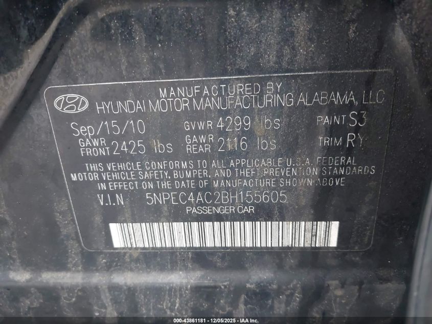 2011 HYUNDAI SONATA SE