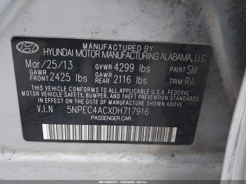 2013 HYUNDAI SONATA 2013 року Бензин, 2.4, Передний привод, vin - 5NPEC4ACXDH717916 из США