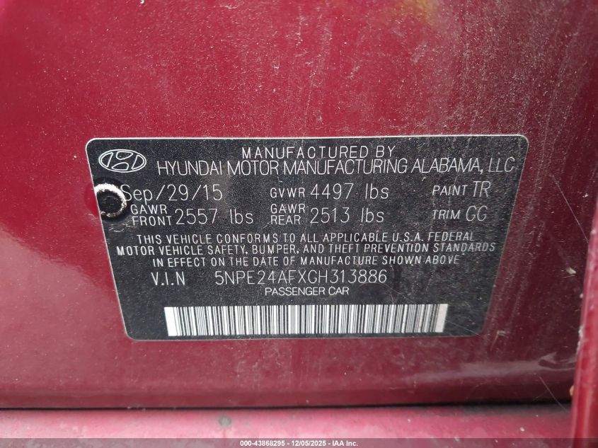 2016 HYUNDAI SONATA 2016 року Бензин, 2.4, Передний привод, vin - 5NPE24AFXGH313886 из США