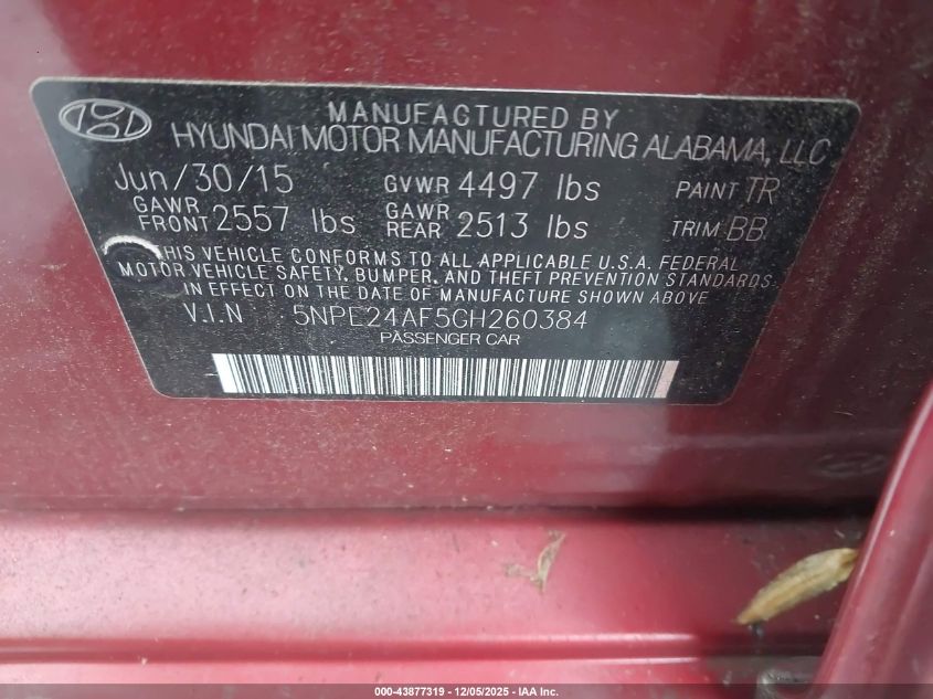 2016 HYUNDAI SONATA 2016 року Бензин, 2.4, Передний привод, vin - 5NPE24AF5GH260384 из США
