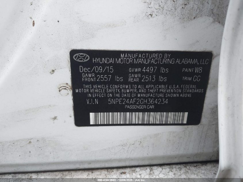 2016 HYUNDAI SONATA 2016 року Бензин, 2.4, Передний привод, vin - 5NPE24AF2GH364234 из США