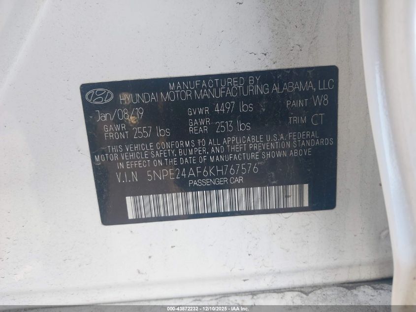 2019 HYUNDAI SONATA SE