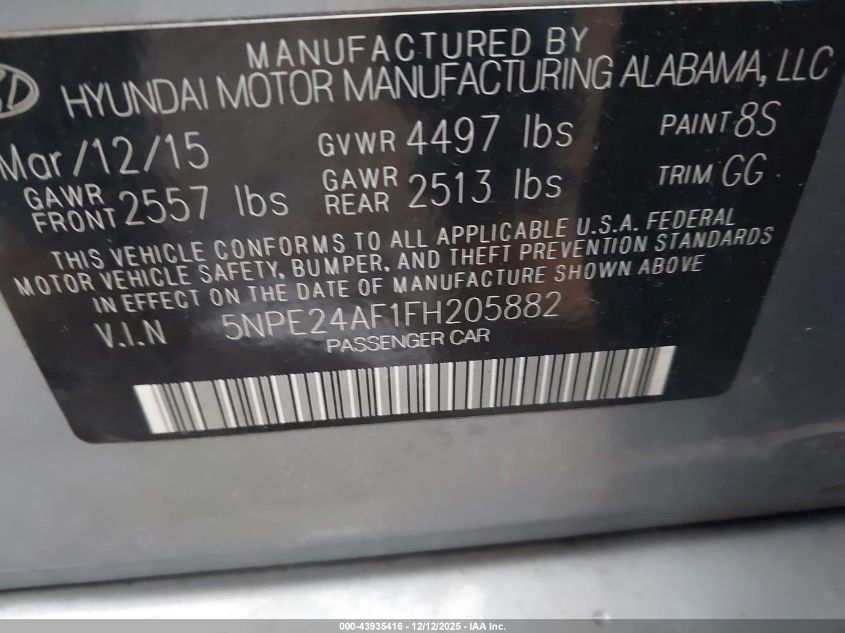 2015 HYUNDAI SONATA 2015 року Бензин, 2.4, Передний привод, vin - 5NPE24AF1FH205882 из США