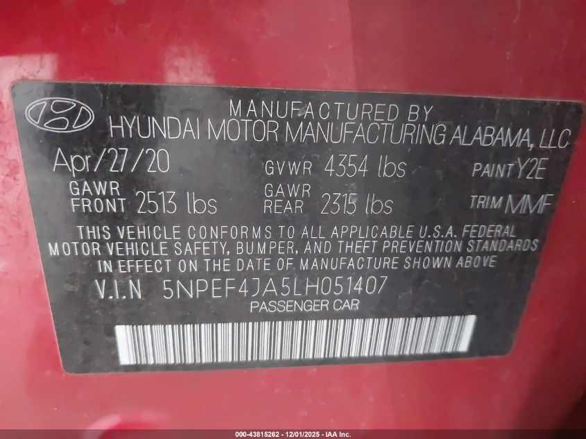2020 HYUNDAI SONATA SEL