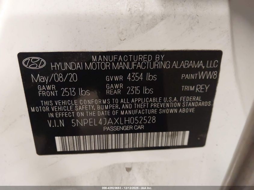 2020 HYUNDAI SONATA 2020 року Бензин, 2.5, Передний привод, vin - 5NPEL4JAXLH052528 из США