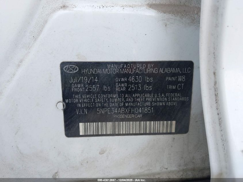 2015 HYUNDAI SONATA 2015 року Бензин, 2.0, Передний привод, vin - 5NPE34ABXFH041851 из США