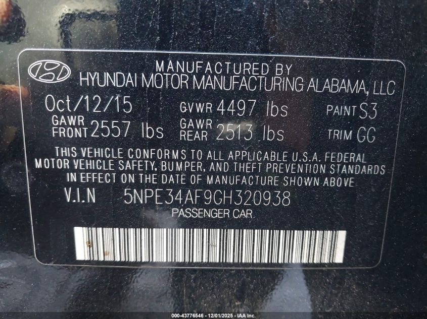 2016 HYUNDAI SONATA 2016 року Бензин, 2.4, Передний привод, vin - 5NPE34AF9GH320938 из США