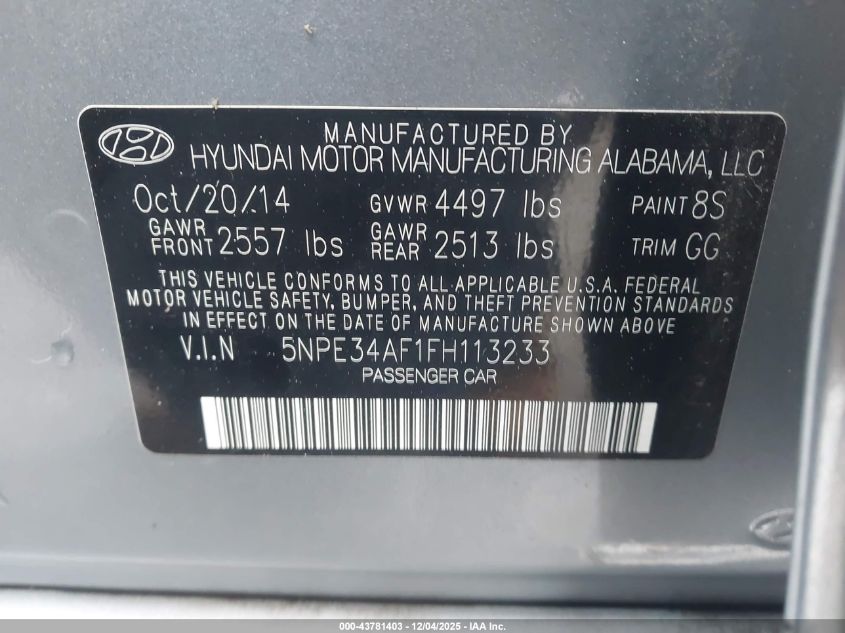 2015 HYUNDAI SONATA 2015 року Бензин, 2.4, Передний привод, vin - 5NPE34AF1FH113233 из США