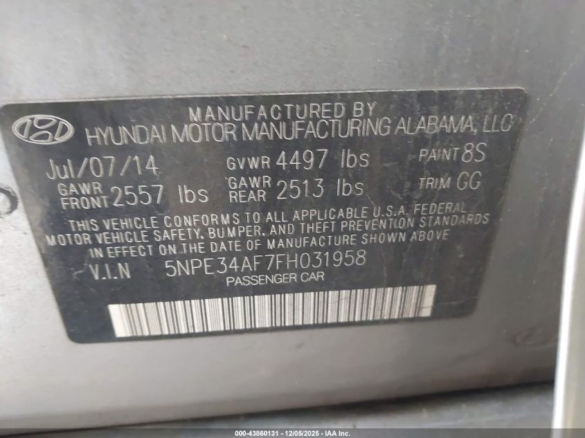 Цвет СерыйЦилиндры 4Привод Передний приводVIN 5NPE34AF7FH031958Состояние СтационарноПовреждения Передняя или задняя AutoRIA