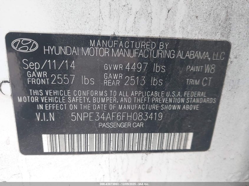 2015 HYUNDAI SONATA 2015 року Бензин, 2.4, Передний привод, vin - 5NPE34AF6FH083419 из США