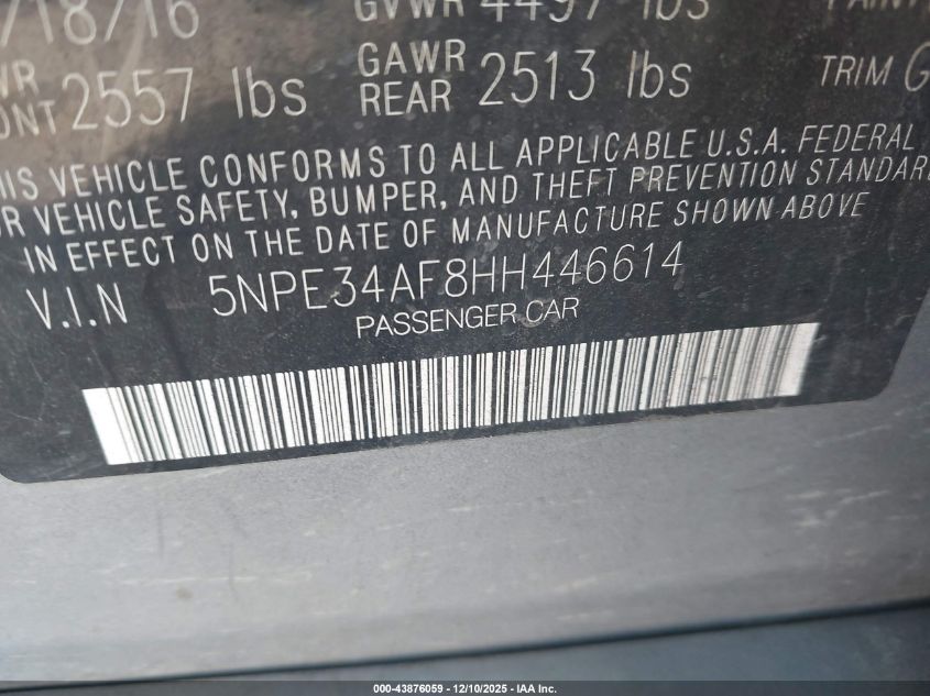 2017 HYUNDAI SONATA 2017 року Бензин, 2.4, Передний привод, vin - 5NPE34AF8HH446614 из США
