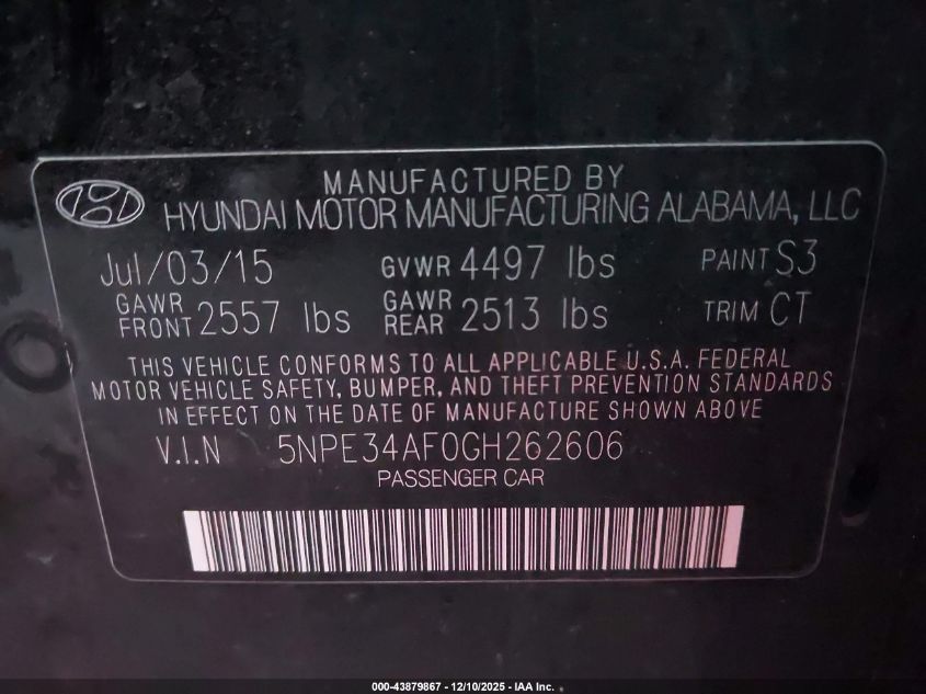 2016 HYUNDAI SONATA 2016 року Бензин, 2.4, Передний привод, vin - 5NPE34AF0GH262606 из США
