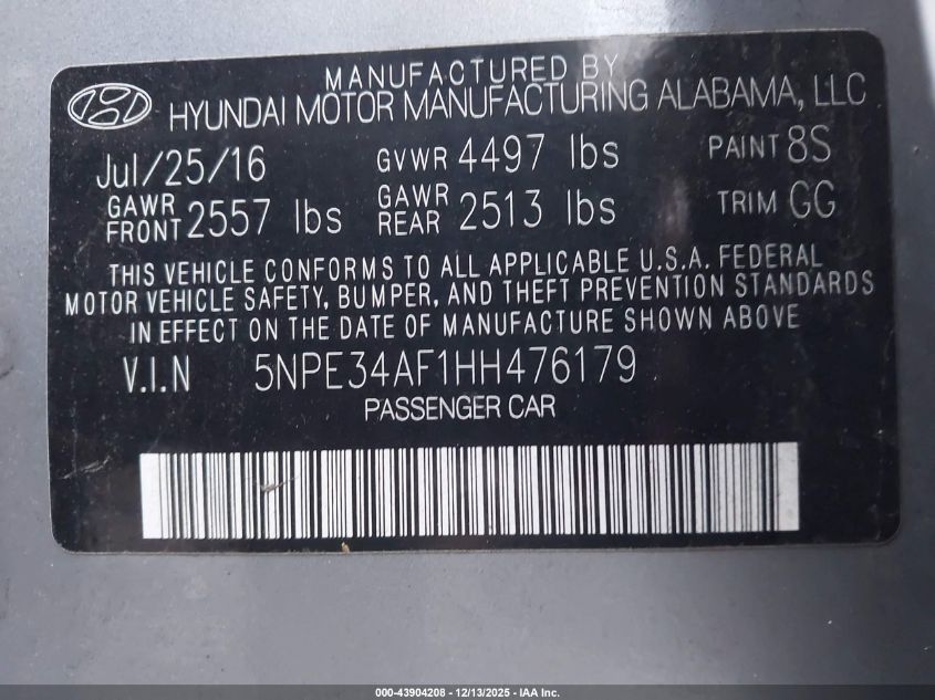 2017 HYUNDAI SONATA 2017 року Бензин, 2.4, Передний привод, vin - 5NPE34AF1HH476179 из США