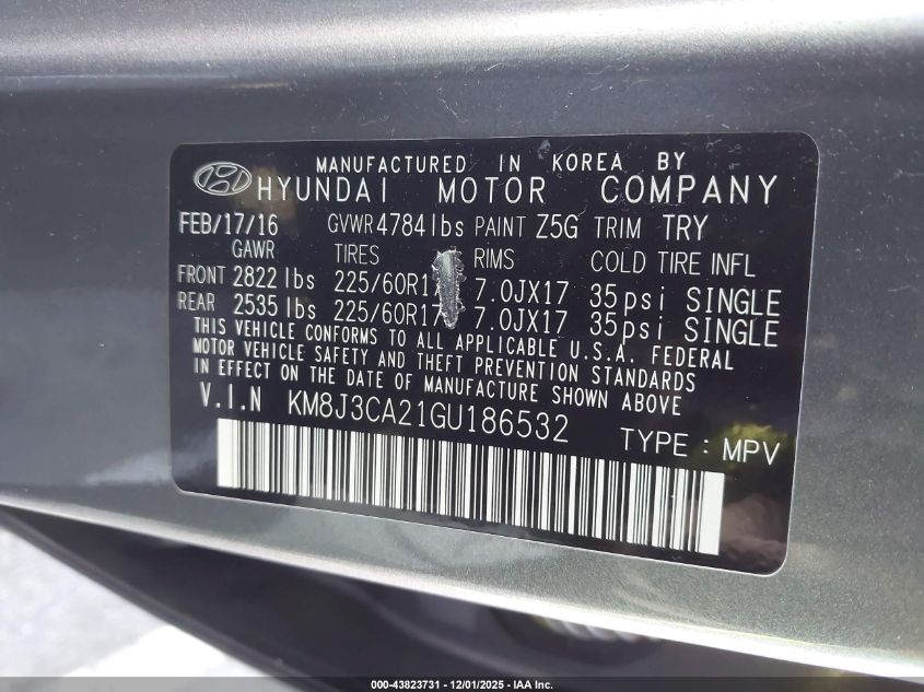 2016 HYUNDAI TUCSON 2016 року Бензин, 1.6, Полный привод, vin - KM8J3CA21GU186532 из США
