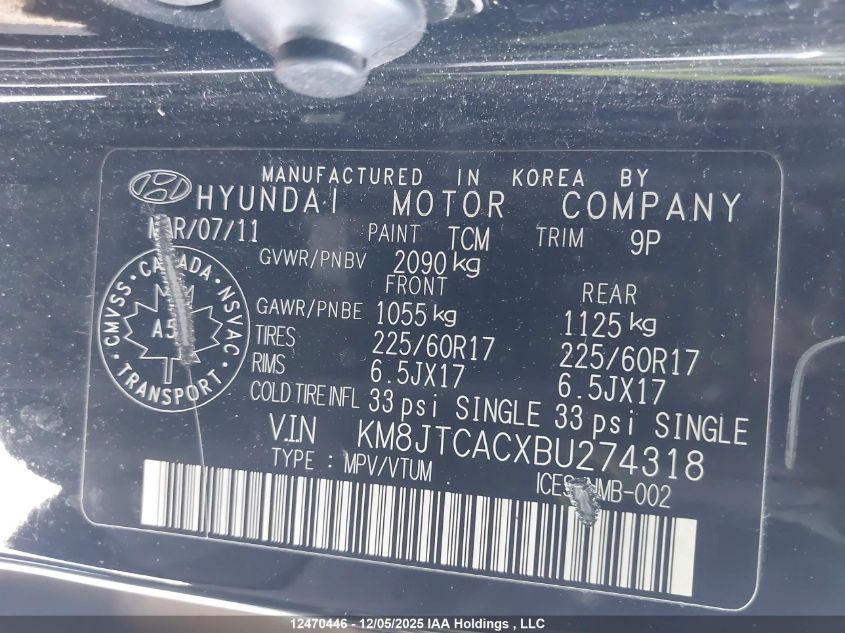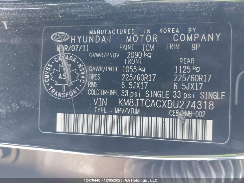 2011 HYUNDAI TUCSON 2011 року Бензин, , Полный привод, vin - KM8JTCACXBU274318 из США